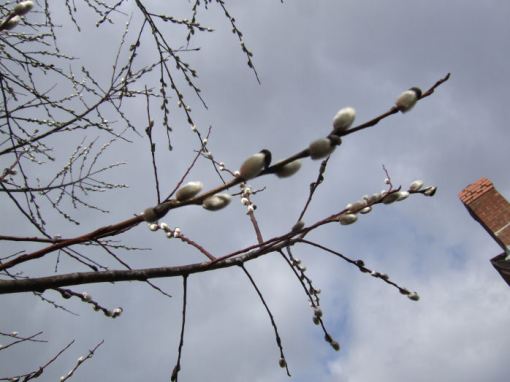 One of the key features in the garden in February is the wonderful display of catkins from the willow (Salix daphnoides). Interestingly, I took photos of the tree and its catkins in March 2007, a whole month later than this year.