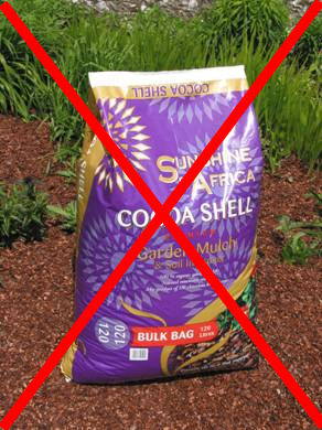 Cocoa Shells should be avoided by gardeners with dogs. I know that they release a lovely smell of cocoa when it rains, but cocoa shells (like chocolate) can be toxic to dogs.
