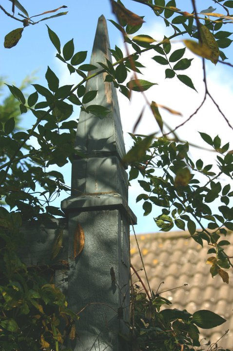 I love this picture of the trellis around the pond with the rose and clematis that adorn it starting to change colour.  The blue of the post works so well with the blue sky, but this is a picture I would never have thought to take.