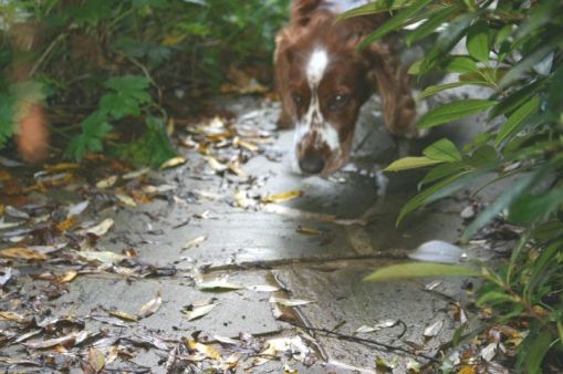 We had to have a photo with one of the dogs.  Here, Bobby has managed to get a feel of the garden from their perspective .  There is no doubt that this photo is taken outdoors and yet the garden is almost irrelevant to the story.  Far more important is the mission that Ruby is on – if only we could read her mind.